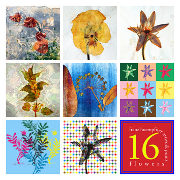 A digital signed artist's book ( 21x21cm (Hardcover, 36 Pages) by Franz Huempfner with 16 artworks on the theme of flowers. High-quality industrial inkjet printing (Canon Varioprint IX ).