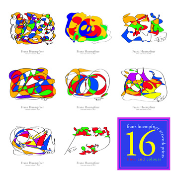 A digital signed artist's book ( 21x21cm (Hardcover, 36 Pages) by Franz Huempfner with 16 artworks on the theme of abstract art - lines and colours. High-quality industrial inkjet printing (Canon Varioprint IX ).